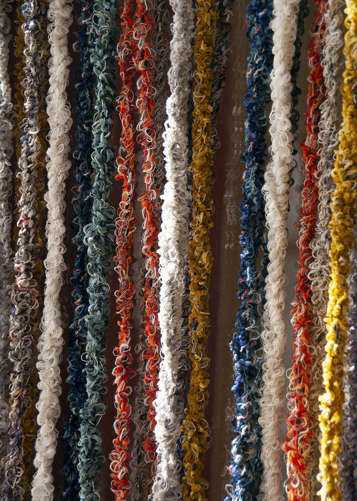 Hermosas y originales en el interior de los hogares como separadores o afuera para impedir que los insectos entran, nuestras cortinas son hechas a mano en un pueblecito de Andalucía con hilos atados reciclados del sector de la confección.